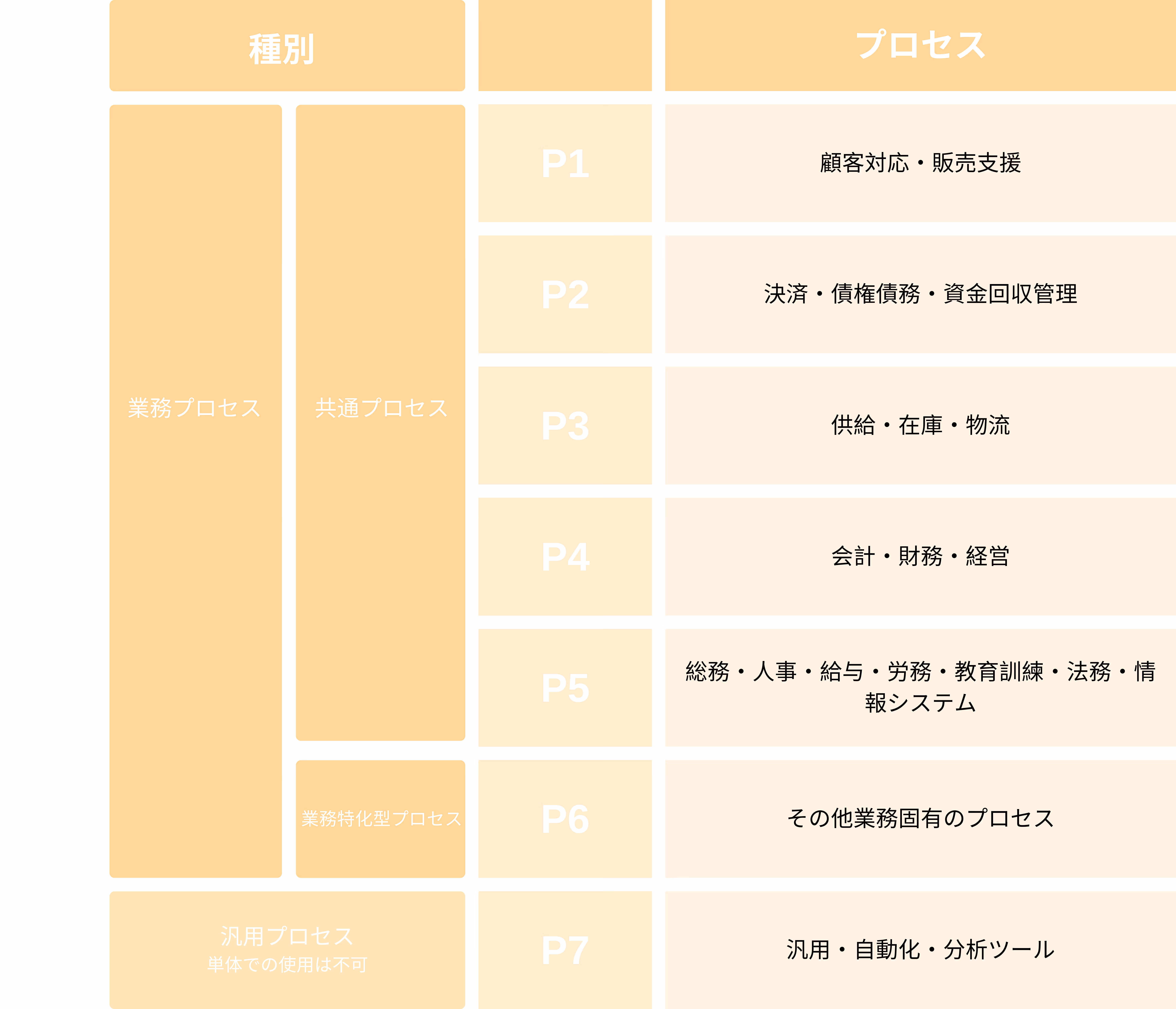 ITツールプロセスは、「顧客対応・販売支援」、「決済・債権債務・資金回収」、「会計・財務・経営」、「業務固有プロセス」に対応し、また、「決済関連ソフトウェア」としてインボイスにも対応しています。