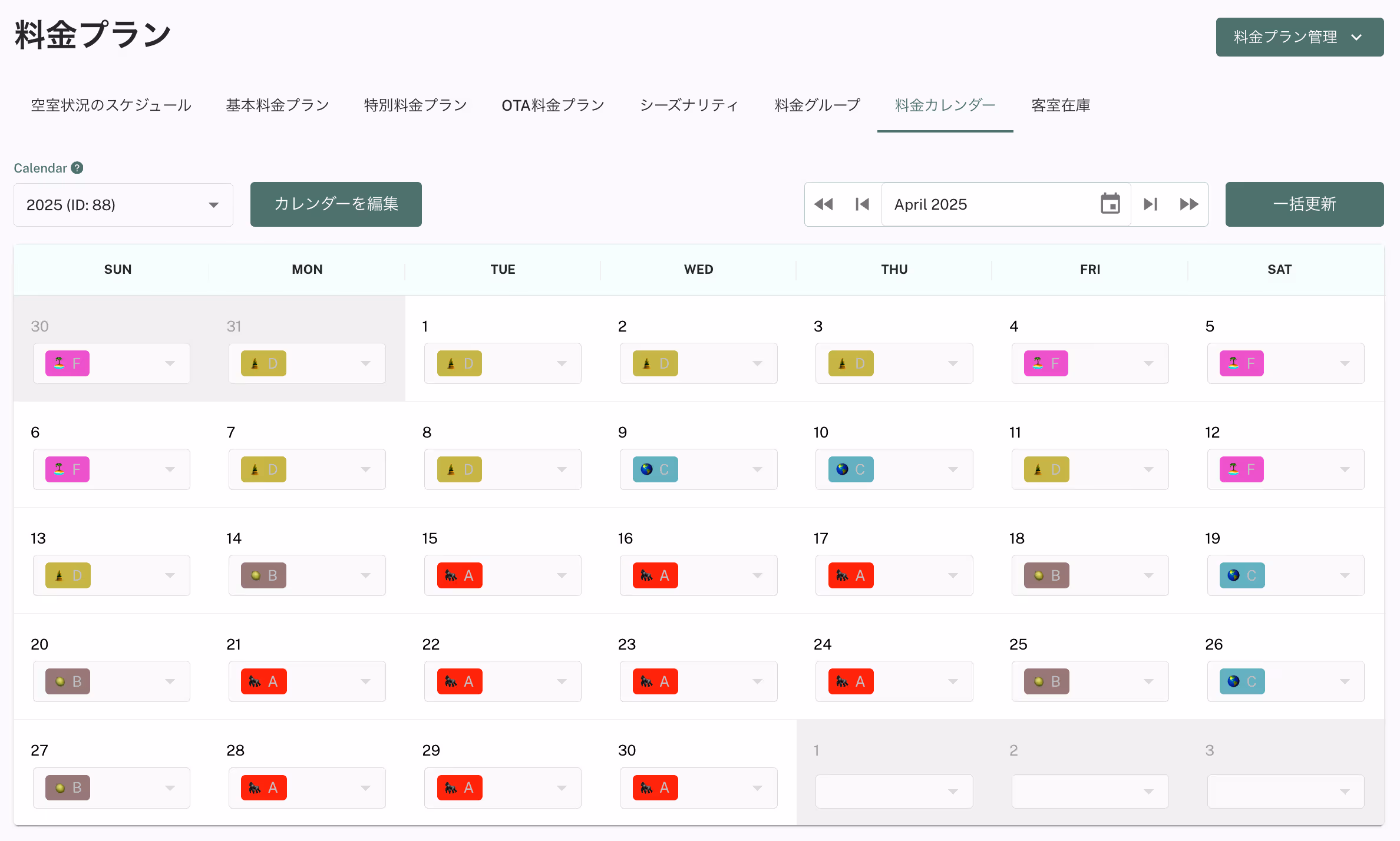 - 料金グループを作成して繁忙期・閑散期を一元管理