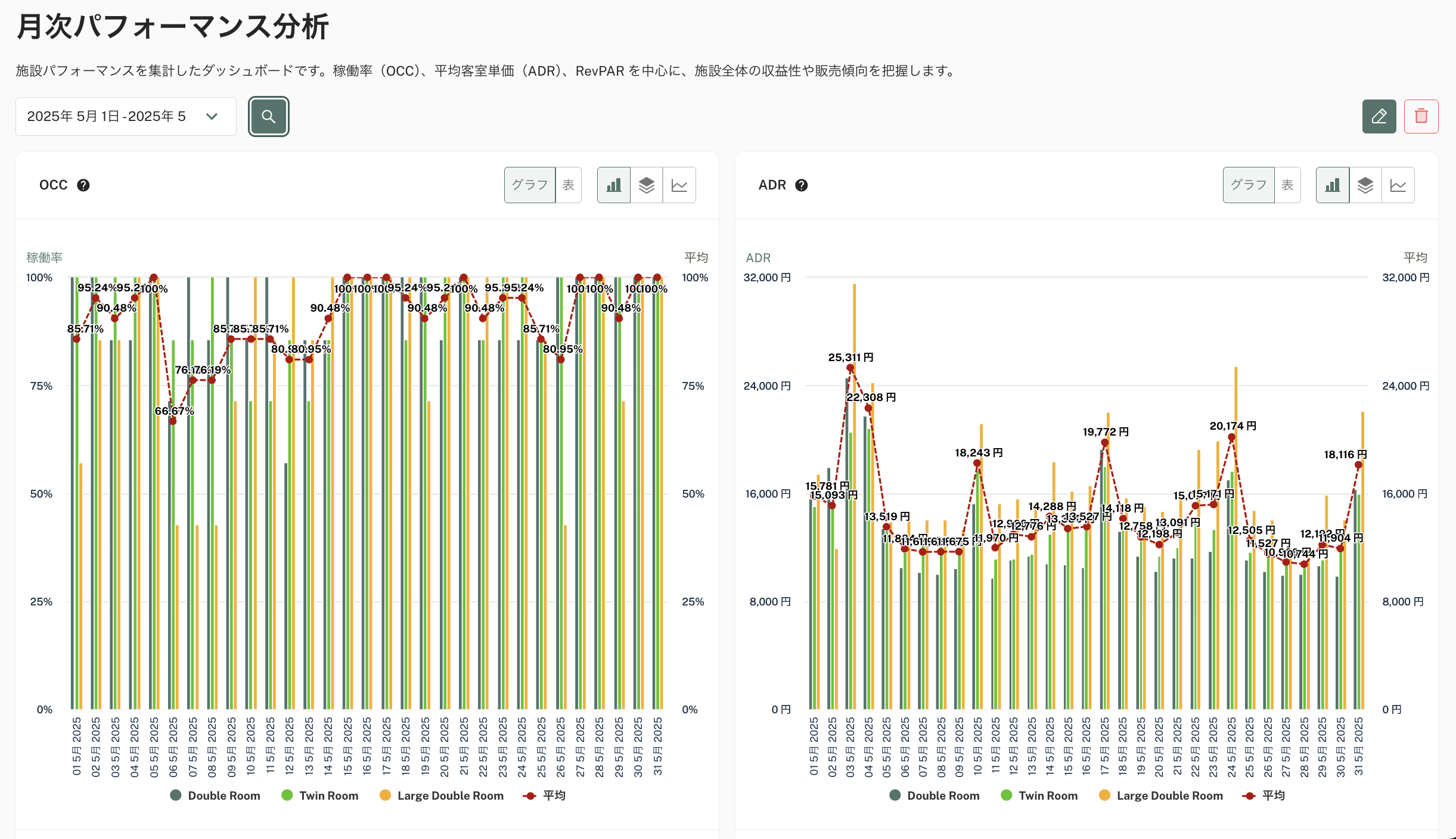 これにより、宿泊施設は自社の運営状況に合わせた分析ダッシュボードを自由に構築できるようになり、日々の意思決定や戦略的な運営に役立てることが可能になります。